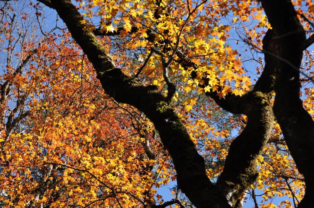 而深秋時節(jié),火紅的楓葉和紅砂巖形成的紅崖絕壁相互呼應(yīng),又是另一番迷人的景象。