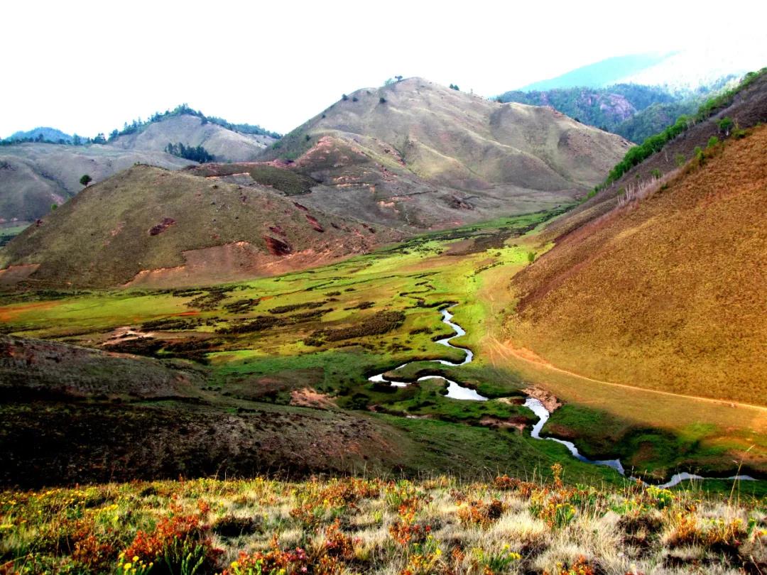 情人壩四面環(huán)山,中央隆起,綠茵蔥蔥的草甸中央流尚著一條溪流,四周山體蜿蜒起伏,層層疊疊的白樺林和楓葉樹,呈現(xiàn)出五采繽紛的色彩,情人壩旁的稗子溝點綴出優(yōu)美的田園風光,讓人流連忘返。每年五月初五,人們身著盛裝相聚于此,載歌載舞。