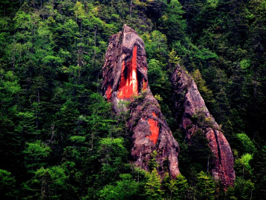 “吉利吉”彩屏是羅古箐風景區(qū)著名的景點之一,為一巨型紅巖峰巖,由紅色砂巖構(gòu)成,質(zhì)地堅硬,從海拔2800米的地方拔地而起,高逾3000米,雄踞箐首,巍峨高大,從兩公里外的大羊場也可以清晰可見。