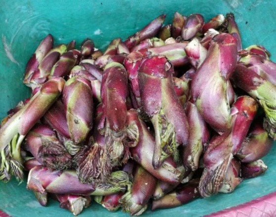 刺椿頭就沒(méi)那么容易采摘了。怒江人俗稱刺椿頭為“刺籠苞”、“刺頭苞”,顧名思義,它能吃的部分一定是渾身長(zhǎng)刺,形似花苞,而且長(zhǎng)在枝頭。就地?fù)煲恢ц镜母蓸?shù)枝,拉下刺椿樹(shù)的枝頭,選擇含苞待放,或剛剛綻出綠芽的,小心翼翼地捏住根部,右手一旋,一個(gè)嫩生生的刺椿頭就摘了下來(lái)。小背簍塞滿了,踏著夕陽(yáng),懷著欣喜,滿意而歸。