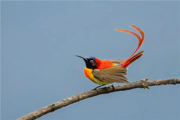 火尾太陽鳥小巧玲瓏,飄逸的紅尾修長靈動。