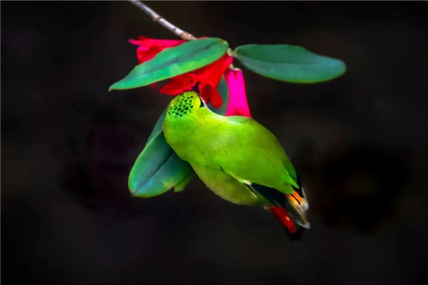 火尾綠鹛在紅花中穿梭