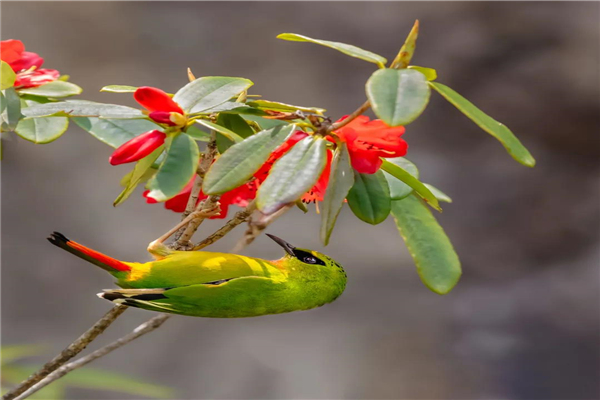 據(jù)記錄,高黎貢山有鳥類525種、怒江段316種、百鳥谷210種,百鳥谷的高光時刻莫過于火尾家族每年的聚會。火尾太陽鳥、火尾綠鹛、火尾希鹛被稱為火尾三劍客。