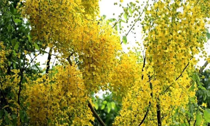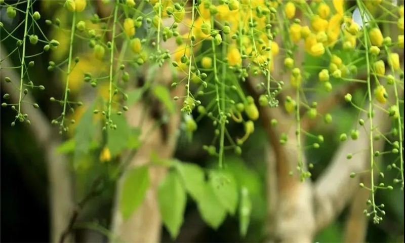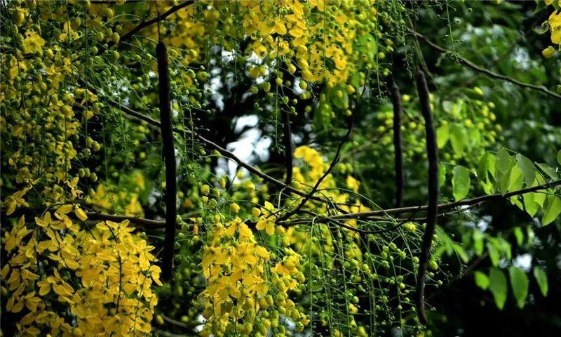 我們每天都在連心橋下的生態(tài)走廊來來往往,在這棵樹下走過無數(shù)次,我也經(jīng)常去,卻從未留意過這樹,直到那天再次路過,被一束黃金吸引,當時我并不知道這樹叫臘腸樹。