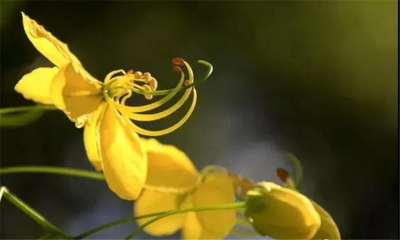 初見此花,便驚詫于它的美。想著這么美麗的花,一定也有一個好聽的名字。在旁邊的花名簡介上一看,結(jié)果卻讓人大跌眼鏡。只因其果實長得像臘腸,便喚作臘腸樹,花為臘腸樹花。
