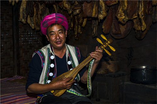 生活在老姆登村的郁伍林是村里第一個(gè)開始搞鄉(xiāng)村旅游的人,他自小在老姆登村生長,剛開始跟所有村民一樣,曾經(jīng)也是“臉朝黃土背朝天”的貧苦農(nóng)民。1996年,剛剛初中畢業(yè)的郁伍林由于能歌善舞,被選中到上海中華民族園代表怒族展示怒族文化。