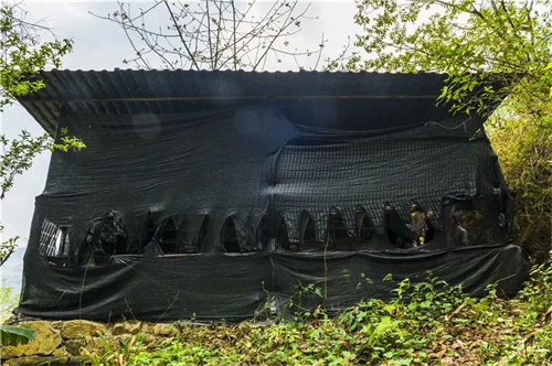 說干就干,張朝江開始在三河村蹲點,早觀察、午投食、晚監(jiān)測……在山上一住就是幾天。2018年1月1日,在袁開友的資助下和張朝江的日夜觀測選址后,三河村建起了2個觀鳥點作為試點。觀鳥點也被稱為鳥塘,搭建在鳥類棲息地的邊緣,經(jīng)過偽裝后很難被鳥發(fā)現(xiàn)。每個鳥塘設(shè)置8個機(jī)位,可以供鳥類研究者、攝影愛好者潛伏在偽裝棚內(nèi)觀察、拍攝。