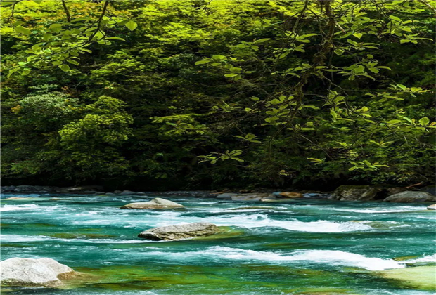 高山密林、流水潺潺