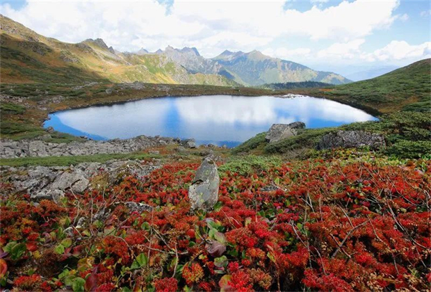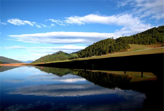 高山湖泊四周的原始森林