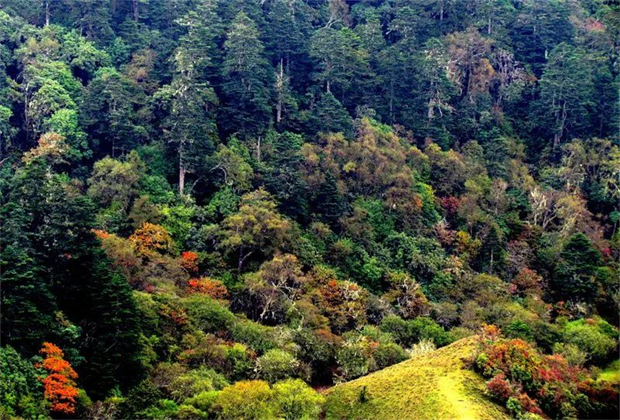 富和山景區(qū)位于怒江蘭坪啦井鎮(zhèn),現(xiàn)在還是一塊天然的處女地,純粹自然,未被塵世所干擾。走進(jìn)萬籟俱寂的原始森林,抬眼便讓人目眩神暈,筆直生長的古木遮天蔽日、苔蘚斑駁。腳下灌木叢生,綠意盎然,四周寂靜無聲,只余風(fēng)聲、水聲、鳥鳴聲,宛如一個藏在世界之外的“小世界”。