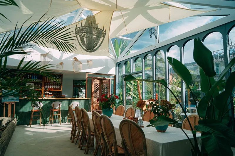 再往里走是民宿的庭院,站在院里能看到四周環(huán)抱的群山,藍(lán)天白云之下,青山環(huán)繞,夏日在露天的泳池沐浴著陽光,感受自然的壯闊也不失為一種獨(dú)特的享受。庭院里有一頂帳篷,這或許是駱老師身為一位資深“驢友”對曾經(jīng)風(fēng)餐露宿、游歷四方的歲月留下的一些紀(jì)念。冬日,坐在院中和貓咪們一起曬曬暖陽,汲取天地靈氣,看看山、賞賞花、發(fā)發(fā)呆,卸下一身的疲憊,感受自然的寧靜、治愈(怒江活動(dòng)策劃)