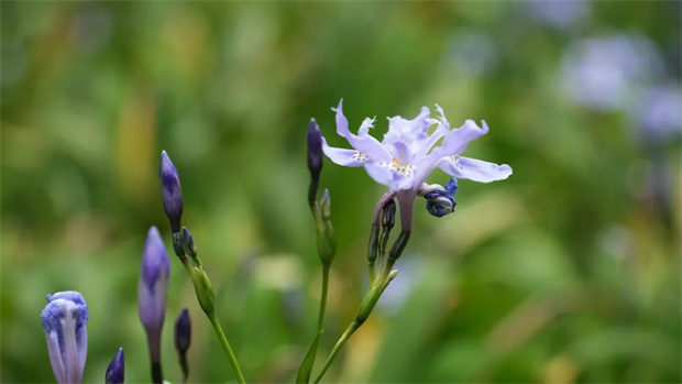 貝的光澤。它們在林間肆意生長,在微風(fēng)中輕輕搖曳,似一群身著紫紗的仙子翩翩起舞。那淡雅的紫色花瓣,帶著幾分
