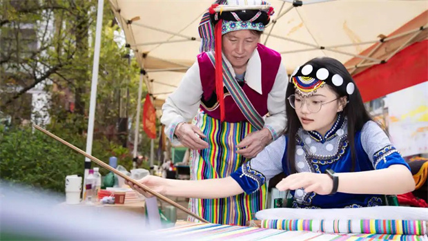 當?shù)靥厣〕砸蚕阄哆h飄,勾人饞蟲。但是怒族非遺展區(qū)卻是我們停留最久的地方,因為怒族弦子彈奏的樂曲清揚動聽