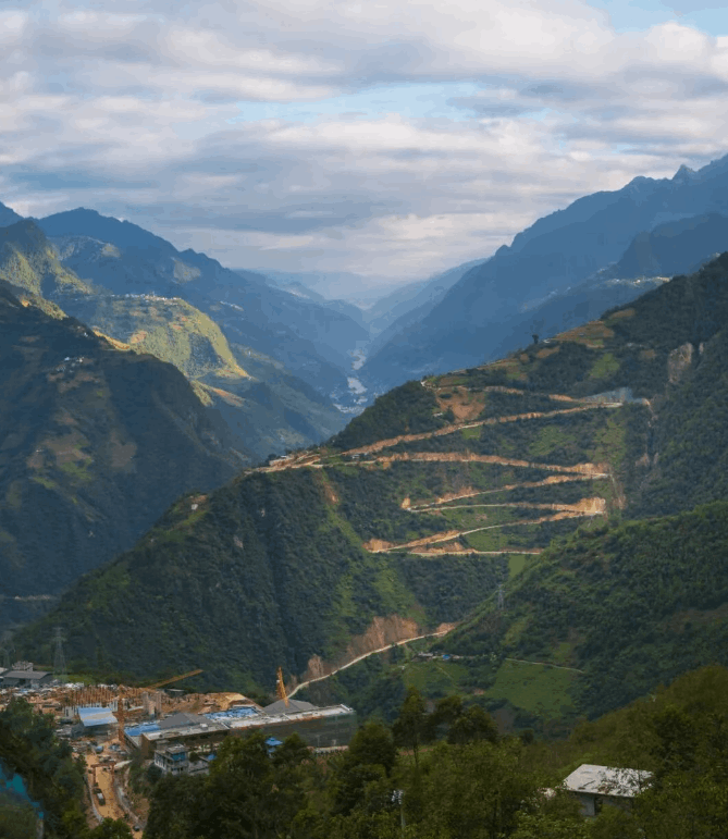 ? 峽谷深度達3500米(貢山丙中洛段),江水如綠色綢帶穿梭于高山之間,形成“V”型絕壁。