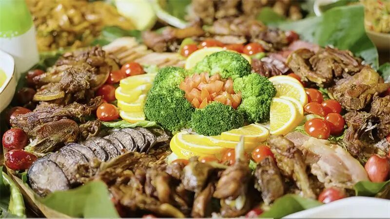 看完才懂,草果宴早就不是一頓飯那么簡單——它是怒江人把山林氣息端上餐桌的智慧,是把家鄉(xiāng)味道做到極致的執(zhí)著。 這一尋常的烹飪香料,在怒江人手中煥發(fā)出全新的生命力,果實、葉、根、芽、花等不同部位與本地食材結(jié)合,做成一桌包括涼菜、熱菜、主食、湯品在內(nèi)的特色宴席。